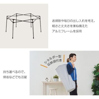 また、持ち運べる収納袋も付属しているため、帰省や旅行などでも活躍します。